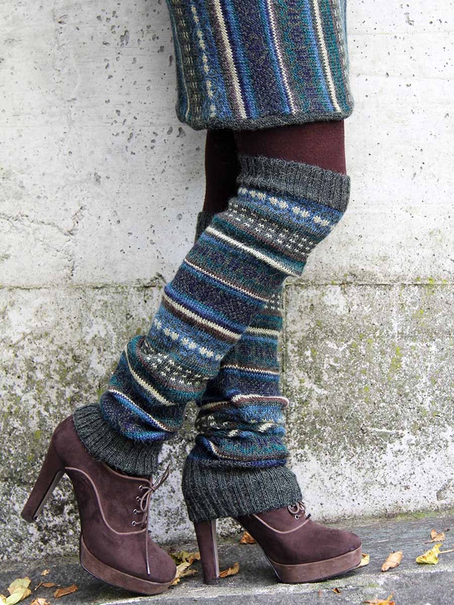 Las prendas están disponibles en varios colores: la falda azul combina a la perfección con un jersey en uno de los tonos del estampado jacquard, mientras que los calentadores también pueden elegirse en un tercer color, creando un armonioso juego de tonos.Accesorios para salir de la oficina: