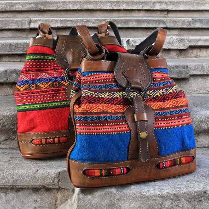 - Musgo, vino, azul medianoche, rojo oscuro y naranja, precisamente los colores obtenidos de la alpaca teñida con pigmentos vegetales.
