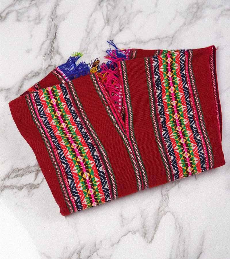 El primero que compré en Perú fue un poncho de tela pequeño, lindo y súper colorido. Se lo compré a mi primera hija, la niñita que me acompañó en ese viaje aventurero.
